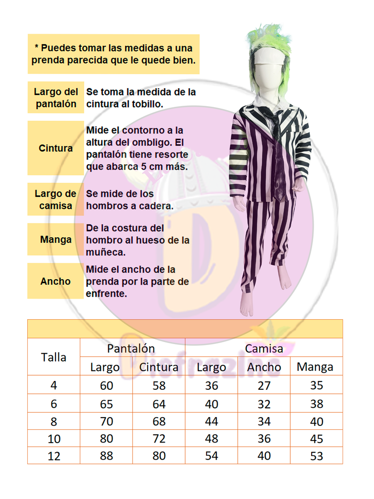 Diseñado especialmente para niños, incluirá una camisa, un pantalón, una peluca y un saco, asegurando que tus pequeños luzcan auténticos y divertidos.