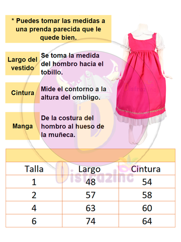 El conjunto incluye un vestido vibrante en tonos rosas, una pañoleta que complementa el look. Hará que tu niña se sienta como la protagonista de su propia historia.